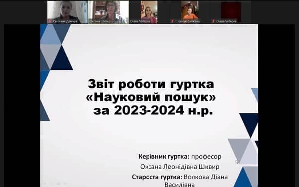 30 травня 2024 р. відбулось останнє засідання в цьому навчальному році студентського гуртка «Науковий пошук», на якому староста гуртка Волкова Д. (здобувачка магістерського рівня вищої освіти) прозвітувала про його роботу протягом 2023-2024