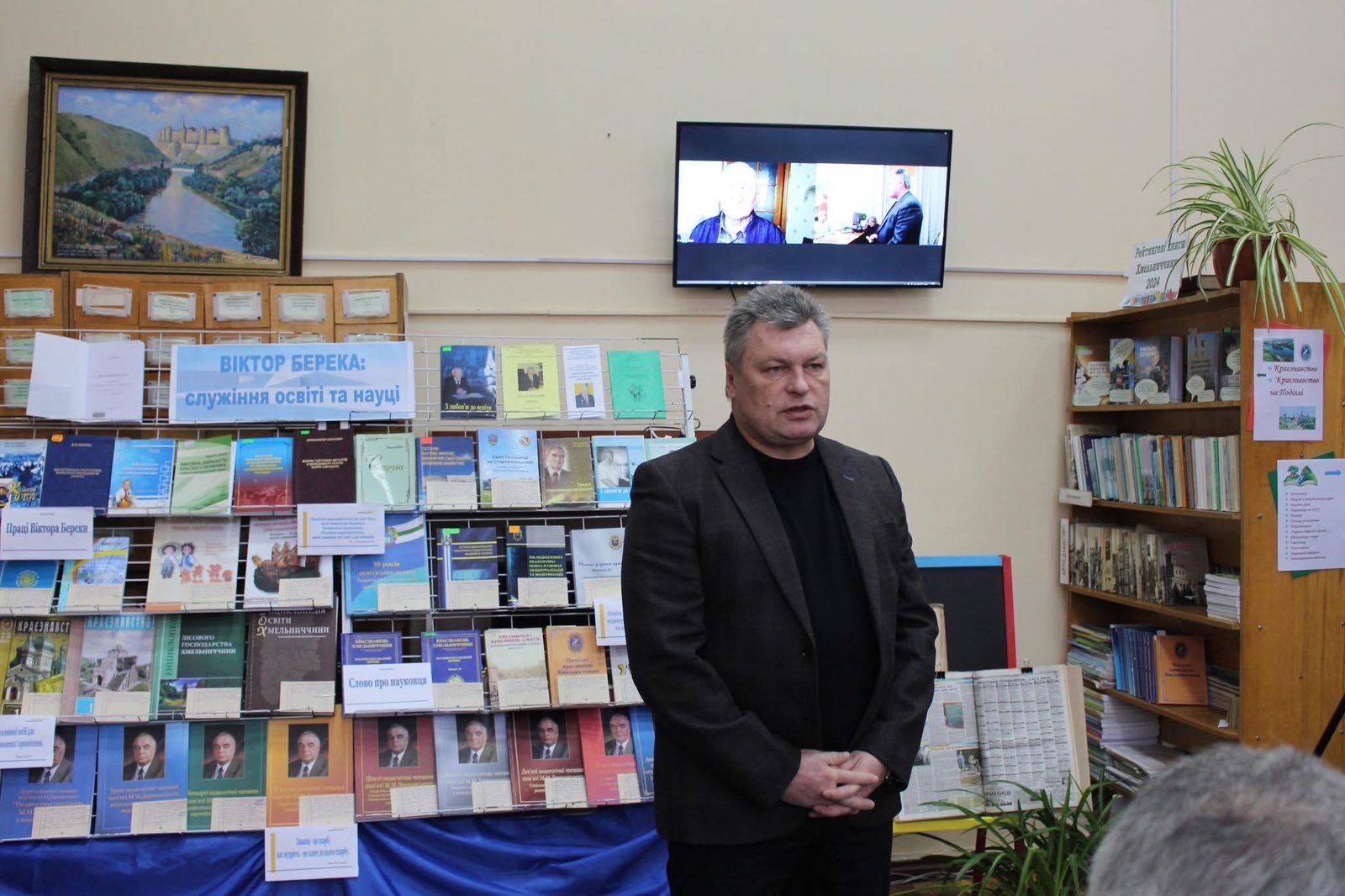 Фахівці бібліотеки підготували виставку праць В.Є.Береки та літератури про нього з бібліотечних фондів, яку переглянули учасники зібрання.