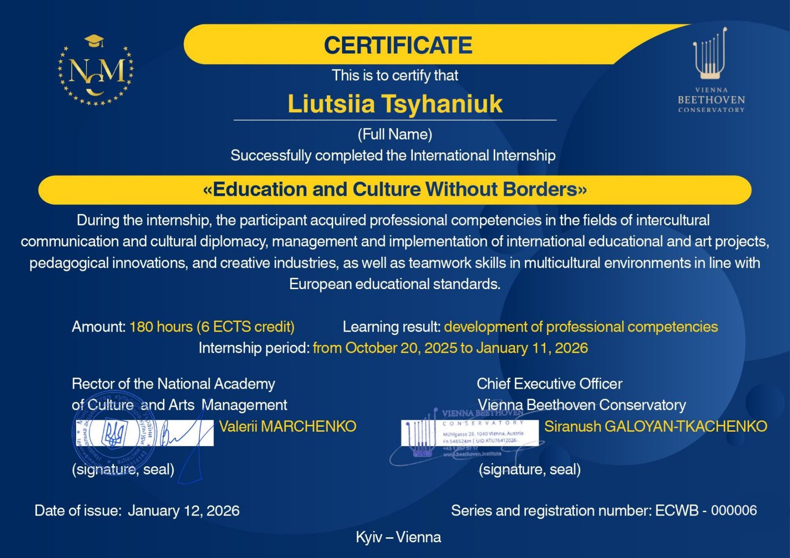 У межах реалізації міжнародної програми «Освіта та культура без кордонів» (обсяг – 180 годин / 6 кредитів ECTS) стажування пройшли: