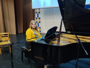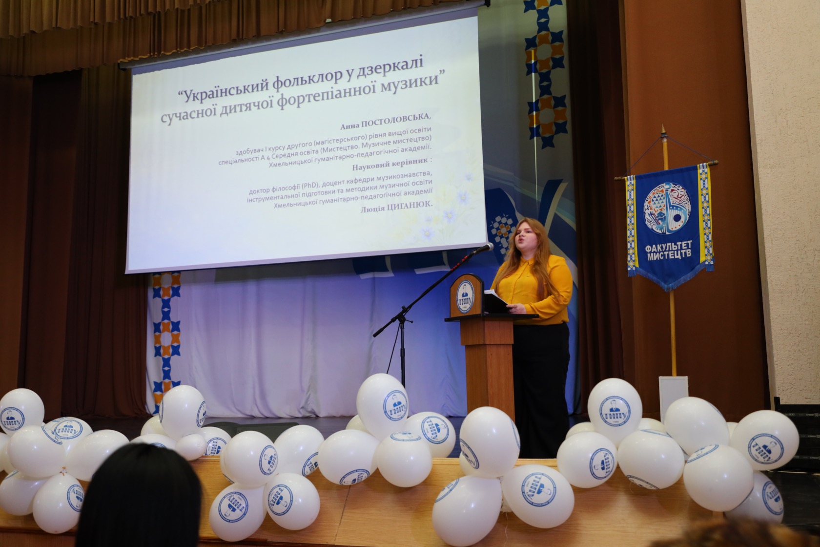 Анна Постоловська презентувала дослідження «Український фольклор у дзеркалі сучасної дитячої фортепіанної музики». Науковий керівник – Люція Циганюк, доктор філософії (PhD), доцент, доцент кафедри музикознавства, інструментальної підготовки та методики музичної освіти ХГПА.