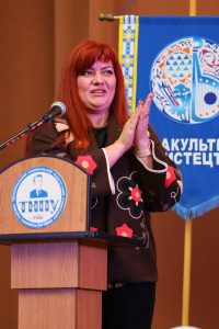 Юлія Романишина представила наукову доповідь «Веснянковий фольклор Поділля у сучасній мистецько-пісенній практиці». Науковий керівник – Лілія Качуринець, кандидат мистецтвознавства, доцент, доцент кафедри вокалу та диригентсько-хорових дисциплін ХГПА.