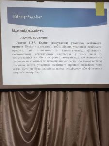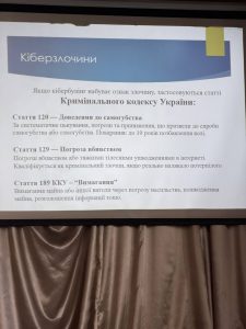 Спікерка звернула увагу здобувачів освіти на важливість обережної поведінки в мережі Інтернет, дотримання правил цифрової безпеки та вміння розпізнавати можливі загрози. Також було наголошено на необхідності критичного ставлення до інформації та відповідального користування соціальними мережами.