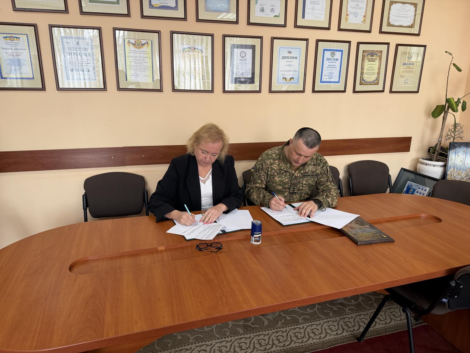 Днями у Хмельницькому відбулося підписання меморандуму про співпрацю між Хмельницькою гуманітарно-педагогічною академією та військовослужбовцями 36-го Подільського полку Національної гвардії України.