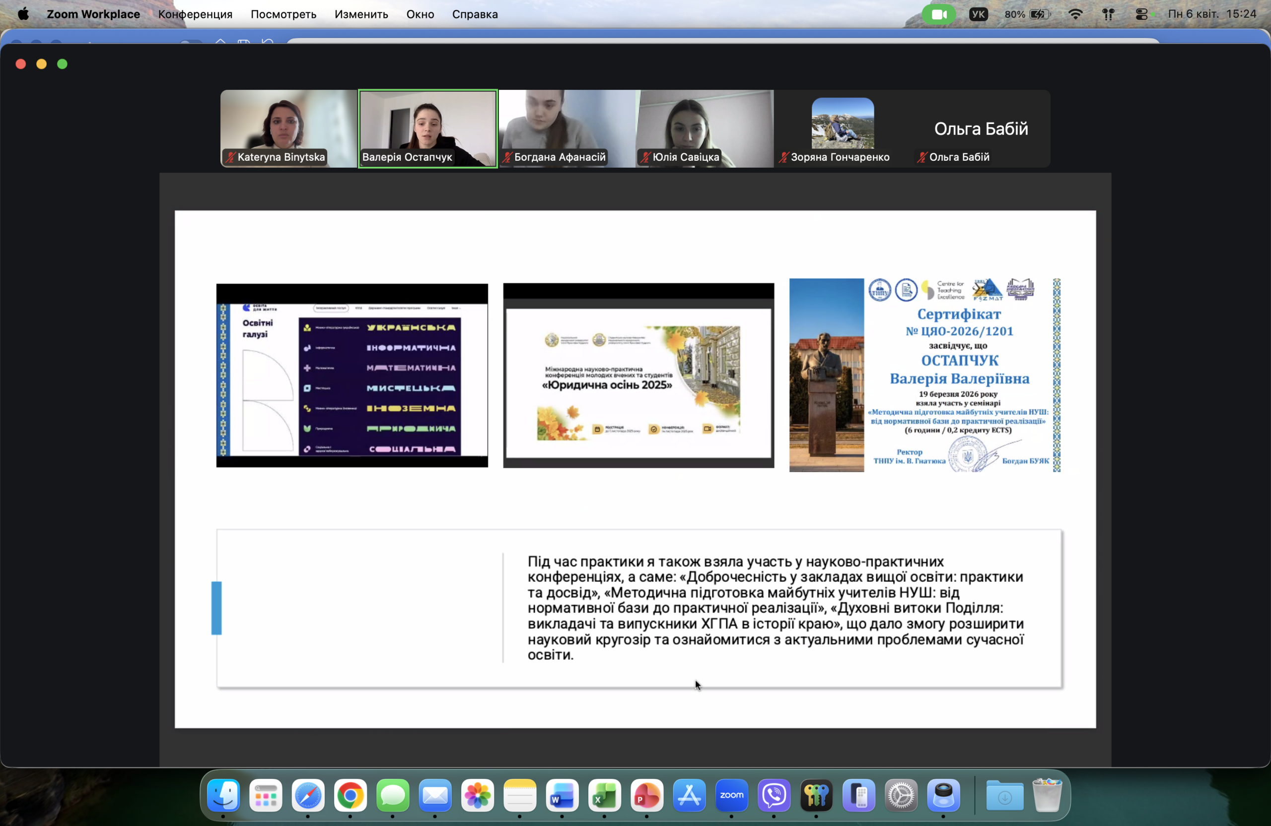 Науково-методичний супровід практики та конференції здійснювала професор Катерина Біницька, під керівництвом якої відбулося обговорення результатів, надано рекомендації щодо подальшого професійного розвитку та вдосконалення педагогічної діяльності.
