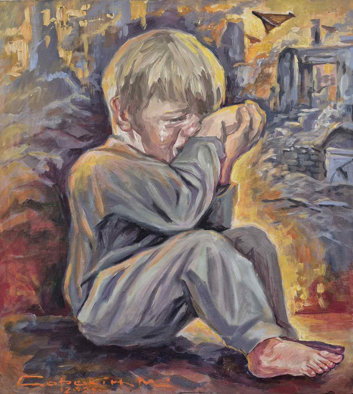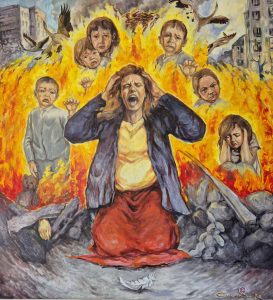 Нова виставка об’єднала серію живописних полотен, сповнених болю, надії та віри у перемогу. Кожна робота передає переживання українців у час війни, силу духу та незламність народу. Водночас експозиція є не лише рефлексією на події сьогодення, а й художнім осмисленням пам’яті та прагнення до мирного майбутнього.