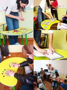 Рожнятовська Л. П. розкрила практичні аспекти теми: планування та проведення спільних індивідуальних та групових занять в ЗДО, специфіку логопедичної роботи з дітьми з ООП, проведення консультацій для педагогів та батьків дітей з ООП, поділилася практичним досвідом (на прикладі дитини з мовленнєвими порушеннями провела вправи на розвиток дрібної моторики, вправи для дихання, артикуляційні вправи мовленнєвих органів).