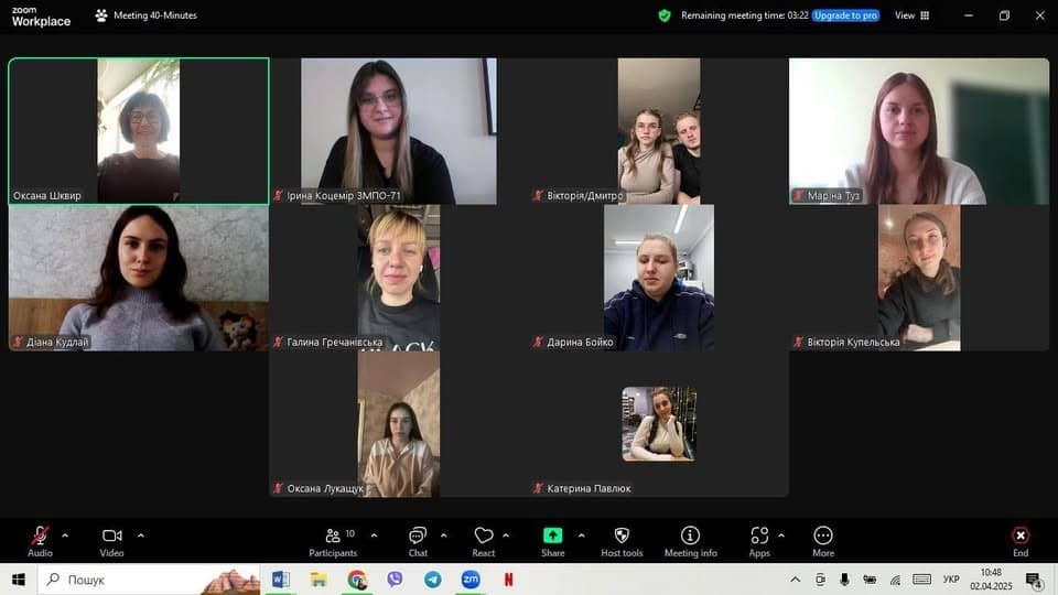 2 квітня 2025 р. відбулось онлайн-обговорення проєкту освітньої-професійної програми «Початкова освіта» (гарант проф. Шквир О.Л.) здобувачами другого (магістерського) рівня вищої освіти денної і заочної форми навчання ХГПА. Під час обговорення акцентувалась увага на особливостях освітньої програми; її відповідності очікуванням здобувачів освіти. З аналізом ОПП виступили староста групи МПО-71 Туз Марина та староста групи ЗМПО-71 Коцемір Ірина. Вони відзначили сильні сторони програми, зокрема реалізація компетентнісного підходу до підготовки майбутніх учителів, концептуальні, дослідницькі та інноваційні засади підготовки, залучення студентів до проєктної діяльності, участі в наукових семінарах, студентських конференціях, роботи гурта «Науковий пошук». Водночас висловили побажання збільшити практичну складову підготовки: кількість годин на семінарсько-практичні заняття.