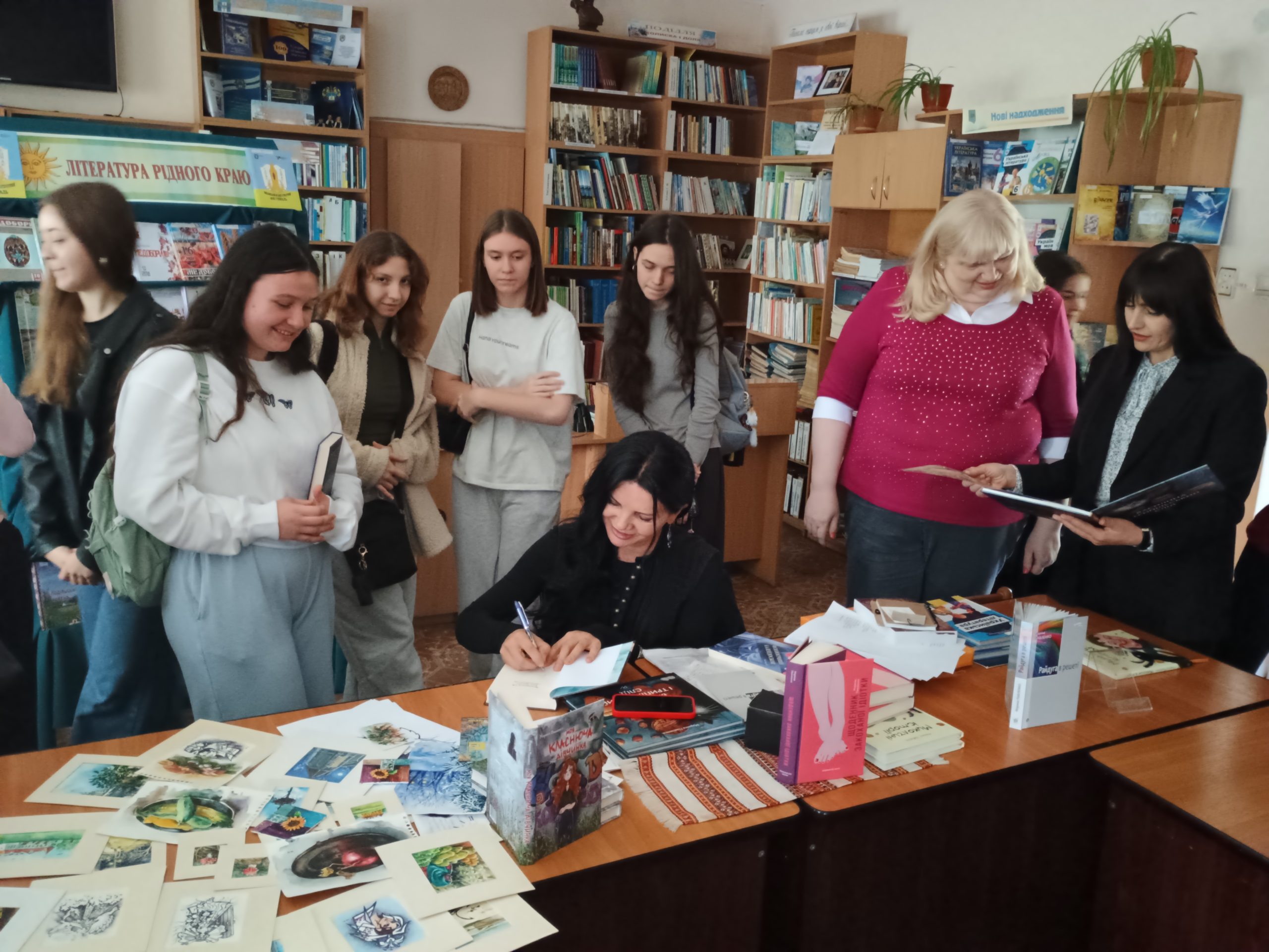 Студенти мали можливість придбати книги авторки, художні твори, листівки з побажаннями від пані Марини та отримати автограф.