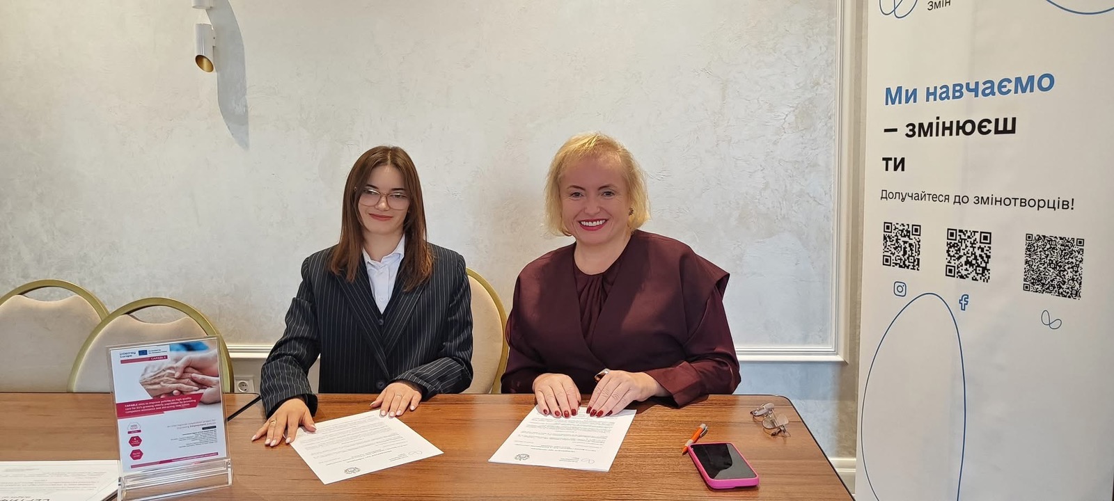 2 жовтня 2025 року доктором педагогічних наук, професором, ректором ХГПА Інною ШОРОБУРОЮ та Головою Благодійної організації «Платформа соціальних змін» Соломією БОЯНОВИЧ підписано Меморандум про співпрацю, метою якого є об’єднання зусиль Платформи та “ХГПА” для розвитку освіти, науки, інновацій, практичної підготовки та соціальних ініціатив у сфері соціального догляду й соціальної економіки, зокрема шляхом спільних проєктів, програм підвищення кваліфікації, досліджень і популяризаційних заходів у Хмельницькій області.
