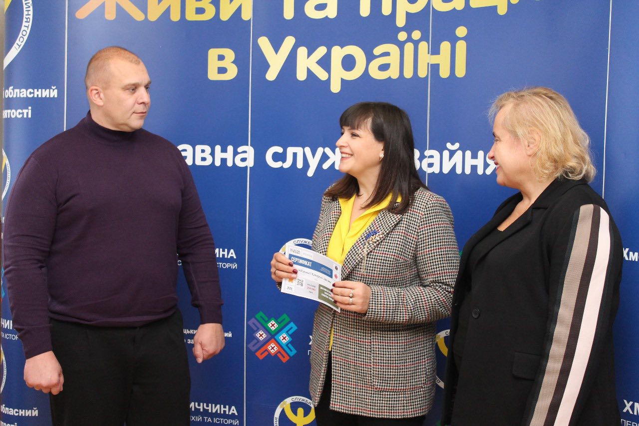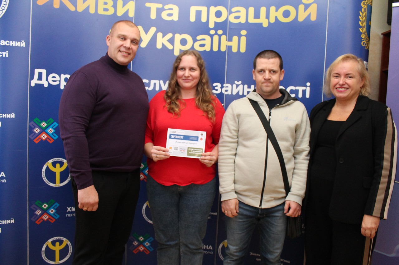 Сертифікати вручали депутатка Хмельницької обласної ради, ректорка Хмельницької гуманітарно-педагогічної академії Інна Шоробура та директор Хмельницького обласного центру зайнятості Віталій Бандирський.