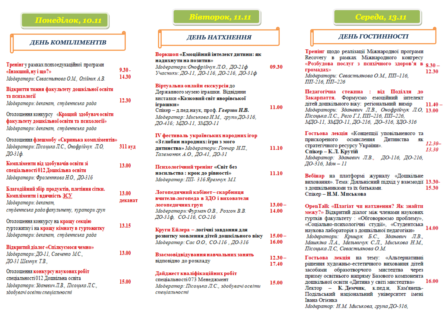 СТАРТУЄ ТИЖДЕНЬ ФАКУЛЬТЕТУ ДОШКІЛЬНОЇ ОСВІТИ ТА ПСИХОЛОГІЇ
