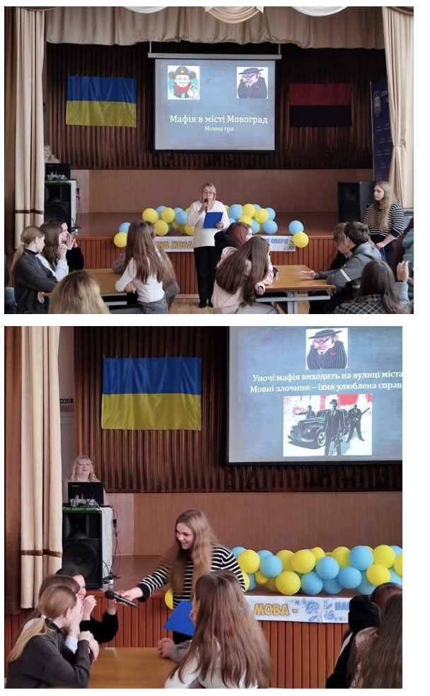 Мовна гра”Мафія в місті Мовоград” (учні гімназії № 12 Хмельницької міської ради, викладачі кафедри Наталія ГРИГОРУК та Валентина ФІЛІНЮК)