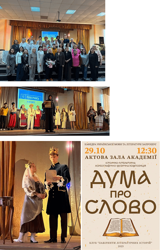 Театралізована вистава «Дума про Слово» (організатор доцент кафедри Валентина СЛЮЗКО)