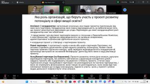 19 листопада 2025 року проректор з міжнародної діяльності – Марія ВОРНИК та начальник відділу міжнародних зв’язків по роботі з студентами – Діана ЗЕМЛЯНКО взяли участь в онлайн тренінгу – практикуму з написання заявок на участь у міжнародних проєктах, який було проведено завідувачем відділу міжнародної діяльності Науково-методичного центру вищої та фахової передвищої освіти.