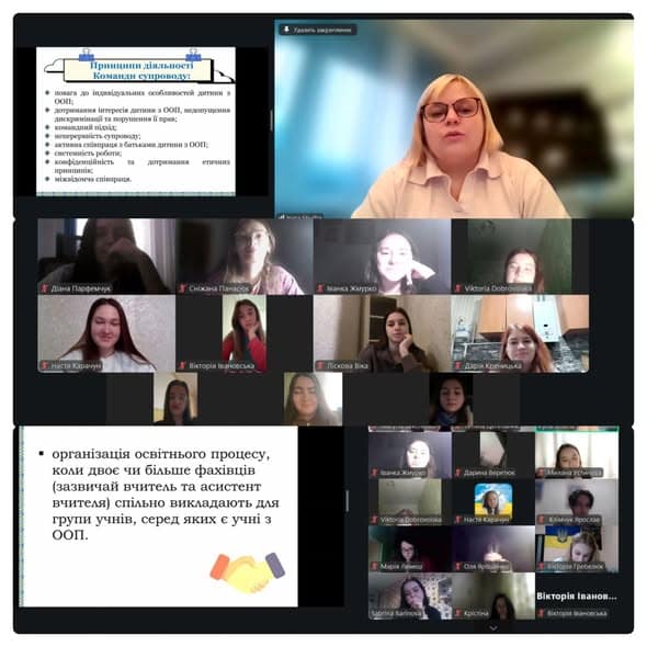У центрі уваги було питання професійної ролі асистента як невід’ємного члена команди психолого-педагогічного супроводу. Лекторка детально окреслила функціональні обов’язки асистента вчителя, його участь у розробленні, реалізації та моніторингу індивідуальної програми розвитку, а також взаємодію з учителем, практичним психологом, соціальним педагогом та іншими фахівцями.