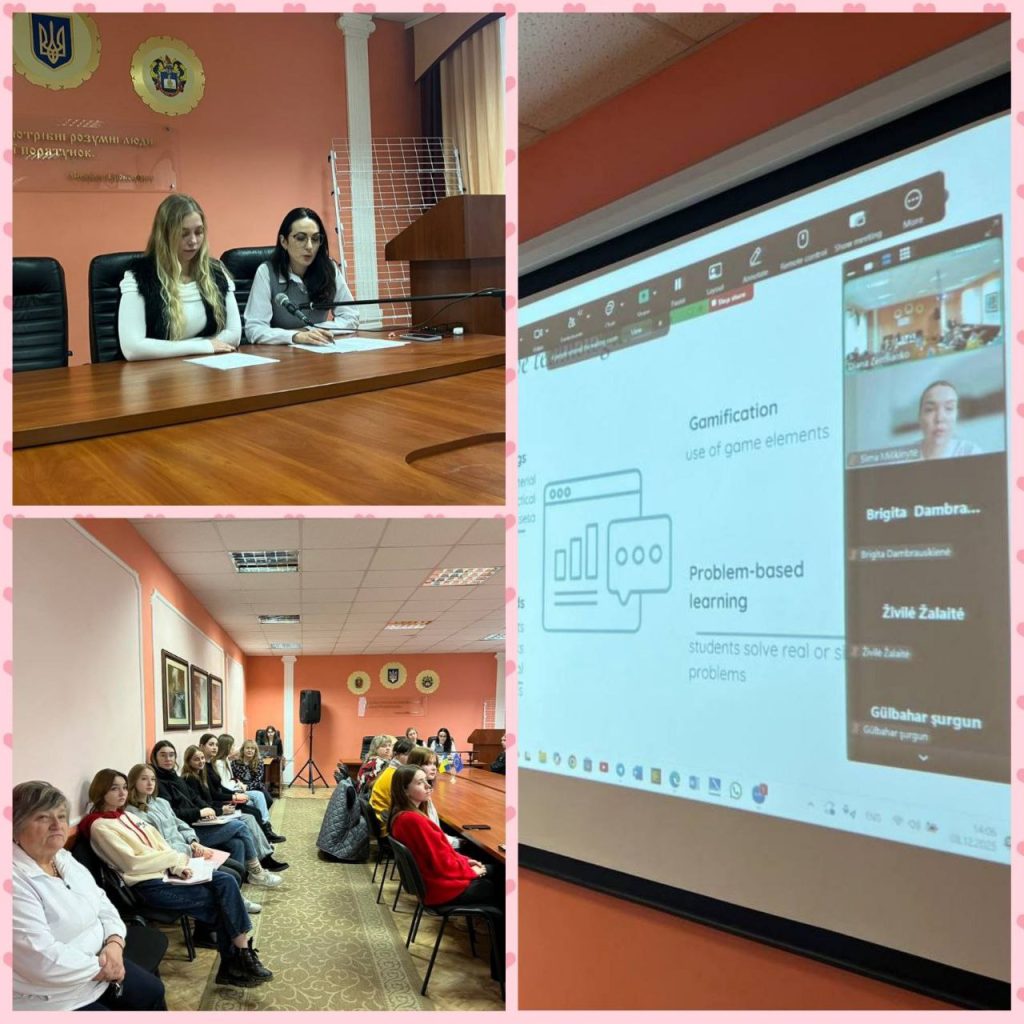 8 грудня у Хмельницькій гуманітарно-педагогічній академії, за сприяння ректора Інни Шоробури, проректора з міжнародної діяльності Марії ВОРНИК та керівника відділу міжнародних зв’язків Діани ЗЕМЛЯНКО, кафедрою дошкільної та спеціальної освіти, психології і фахових методик проведено міжнародний вебінар на тему “Використання інноваційних технологій в галузі дошкільної освіти”. Спікери: кандидат педагогічних наук, доцент Наталія ГОНЧАР та здобувачка другого (магістерського) рівня вищої освіти за спеціальністю А2 Дошкільна освіта Марія ІГНАТЮК поділилися кращими практиками застосування інноваційних освітніх технологій як для роботи зі студентами, так і для роботи з дітьми дошкільного віку.