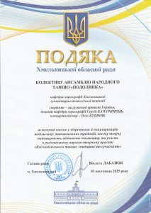 3–4 листопада 2025 року відбувся регіональний науково-творчий проєкт з міжнародною участю «Код подільського танцю: спадщина і сучасність», який об’єднав понад 15 ансамблів народного танцю та понад 40 дослідників народної хореографії, викладачів і практиків у сфері хореографічної культури Поділля.