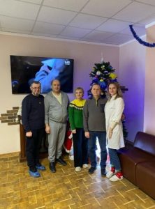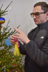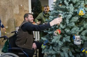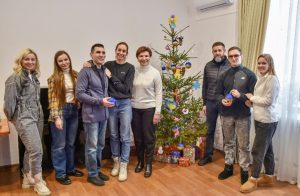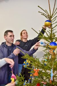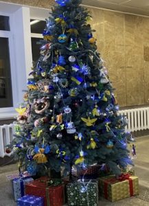 Захисники і Захисниці, які внаслідок поранень на війні втратили зір, та перебувають на реабілітації у МРЦ «Пуща-Водиця» разом з дружинами та професором кафедри І. Ящук прикрасили ялинку та отримали різдвяні подарунки.