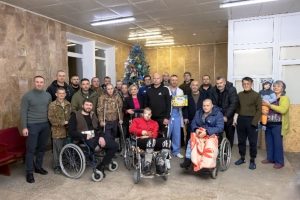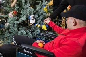 Доцент Н. Казакова разом із пораненими бійцями та працівниками медичного реабілітаційного центру «Хутір Вільний» прикрасили новорічну ялинку.